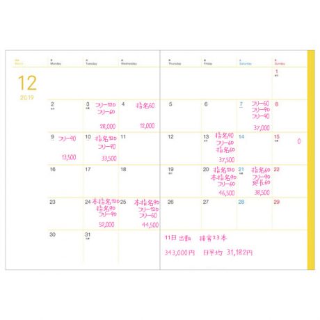 明細が出ない店で、自分の接客記録から収入の見えるものを作るとなると、こういう感じになると思う。